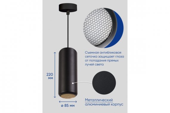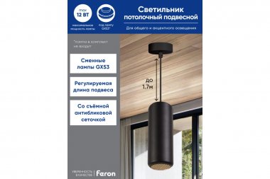 Технические характеристики FERON hl3658 barrel echo levitation 12w, 230v, gx53, чёрный, с антибликовой сеточкой, на подвесе 1,7 м, 48403