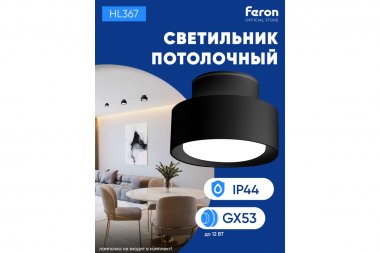 Технические характеристики FERON HL367 Barrel AURA 12W, 230V, GX53, черный IP20 48406