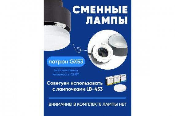 Светильник накладной под лампу, спот (ИПО) FERON HL3678, GX53 12W, 230V, IP20, цвет черный, корпус алюминий, акрил, рассеиватель акрил , 110*74,5