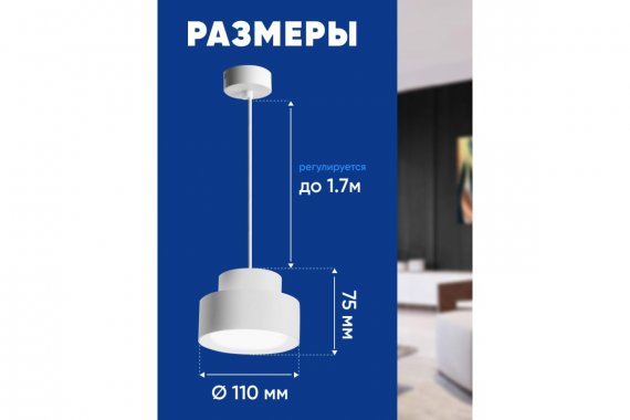 - С помощью специального фиксатора, расположенного в основании, можно регулировать длину подвеса до 17м
