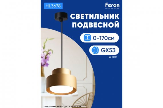 Технические характеристики FERON hl3678 barrel aura levitation 12w, 230v, gx53, золото, на подвесе 1,7 м, 48411