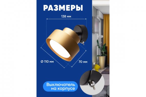 Feron 48414 Подсветка настенная GX53 (с выключателем) HL3670 золото, 12W, 230V