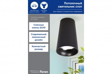 Накладные светильники FERON предназначены для общего и акцентного освещения в жилых помещениях. Компактный размер и оригинальная форма светильников позволяют органично вписать их в любой интерьер, сделав акцент на самом важном.
