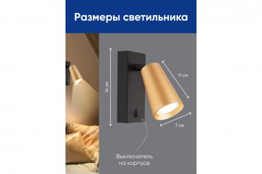 Подсветка настенная GU10 (с выключателем) FERON ML185 золото и черный, 35W, 230V, корпус металл, IP20, 65*60*140мм,