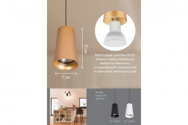 Технические характеристики FERON ml1858 barrel bell levitation на подвесе, 1,7 м, mr16, 35w, 230v, золото черный 48423