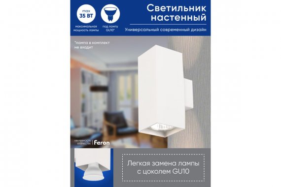 Светильник накладной, (-) FERON ML1740, 2*GU10 35W, 230V, IP20, цвет белый, корпус алюминий, 85*60*145