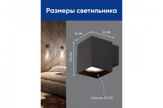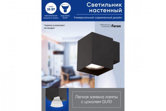 Светильник накладной, (-) FERON ML1730, GU10 35W, 230V, IP20, цвет черный, корпус алюминий, 85*60*75