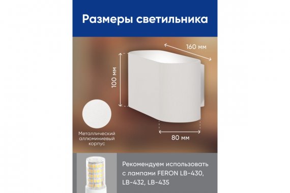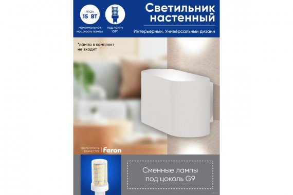 Настенные светильники FERON предназначены для общего и акцентного освещения в жилых помещениях. Компактный размер и лаконичный дизайн светильников позволяют органично вписать их в любой интерьер, сделав акцент на самом важном. Светильник используется с лампой с цоколем G9.
