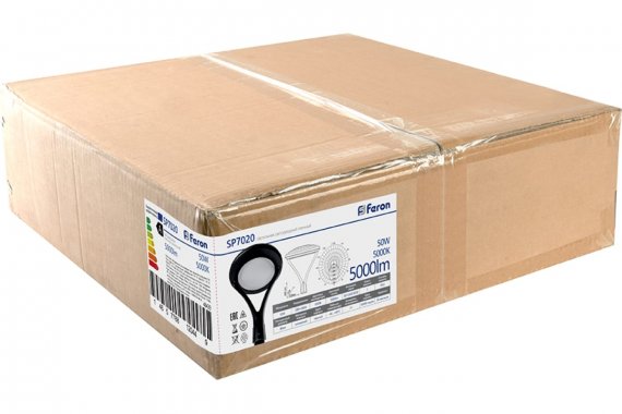 Светильник уличный, на столб (ДТУ) FERON SP7020, 50W, 5000К (белый натуральный), 100-270/50HzV/50Гц, 5000Lm, IP65, 60LED*SMD3030, класс защиты 1, раб.t -40°C - +40°C, цвет серый, корпус алюминий, 520*520*600мм,