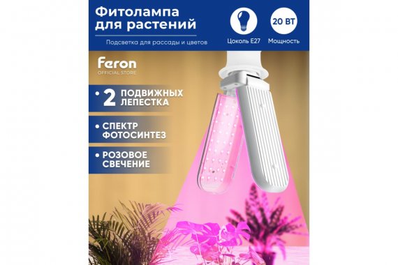 Дополнительные технические характеристики светодиодной лампы FERON 2-х лепестковой LB-7000 E27 20W красно-синий спектр, 48443:
