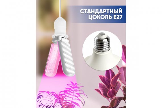 Лампа для растений FERON LB-7000, (лепестковая), 20W 175-265V E27 (розовый), рассеиватель прозрачный угол рассеивания 180°, 230*63мм