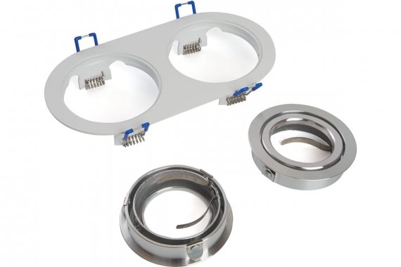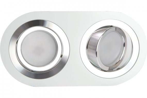 Светильник потолочный встраиваемый (ИВО) FERON DL2812, под лампу MR16 G5.3, белый+хром, овал, 175*92*25 мм, монтажный диаметр 155мм, корпус металл, поворотный