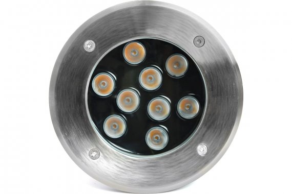 Тротуарный светильник светодиодный, встраиваемый (ДВУ) FERON SP2803, 10W, 3000К (теплый белый), AC12V/50Гц, 800Lm, IP67, угол рассеивания 15°, 9LED*SMD3030, класс защиты 3, цвет металлик, корпус алюминий, сталь, 160*160*90мм, D внутр. 110мм