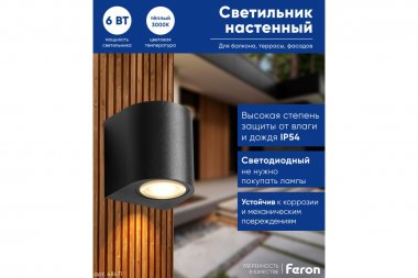 Feron 48471 Светильник уличный светодиодный, на стену (ДБУ) DH052, серия Бостон, 6W, 3000К