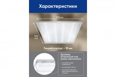 - Встроенный под рамкой светильника тонкий драйвер не создает помех освещению и не портит внешнего вида св-ка