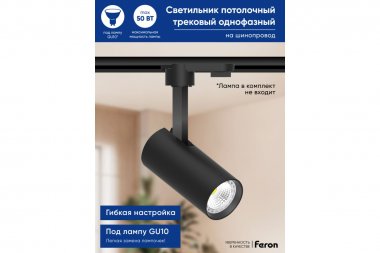 Feron 48543 Светильники трековые на шинопровод GU10, однофазный (ИВО) AL195, 50W, 230V