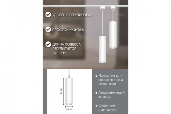 Технические характеристики FERON al196 на подвесе, под лампу gu10, белый 48556