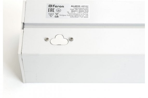 Технические характеристики FERON al4035 ip40 36w 4000к, рассеиватель матовый в алюминиевом корпусе, белый 1180x70x55мм 48584