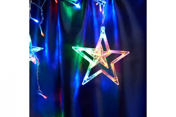 Гирлянда бахрома FERON CL29, 138LED, (мультиколор), статичная (постоянного свечения), 3*1м+3м прозрачный шнур, расстояние между светодиодами 13,5см, IP20, 8,5W, от сети 230V. Последовательное подключение - НЕТ.