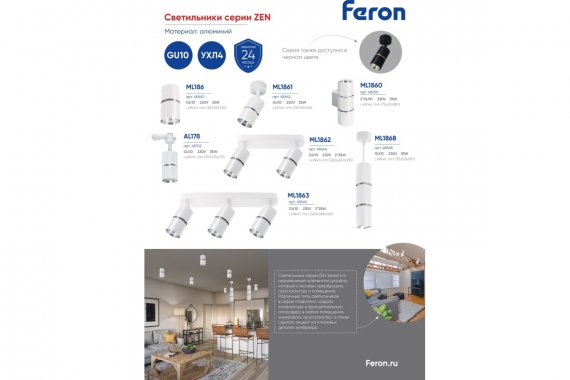 Технические характеристики FERON ml1861 zen под лампу gu10, белый, хром 48642