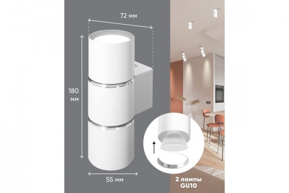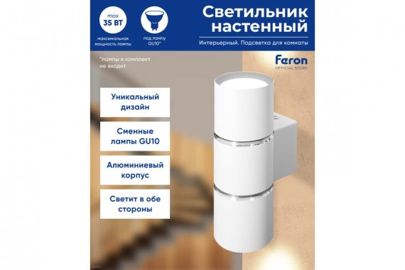 Светильник накладной, спот (-) FERON ML1860, 2*GU10 35W, 230V, IP20, цвет белый-хром, корпус алюминий, 72*72*180