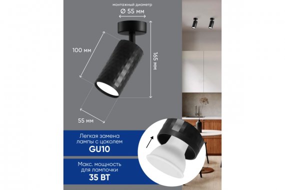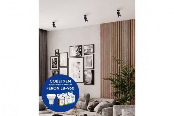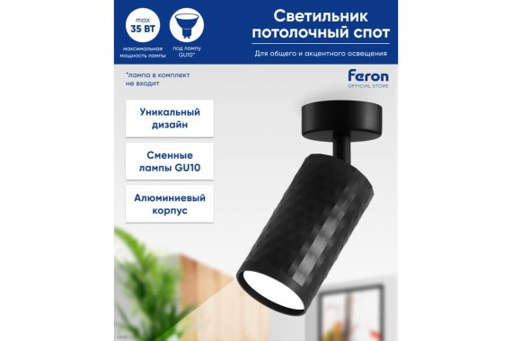 Светильник накладной под лампу, спот (-) FERON ML1871, GU10 35W, 230V, IP20, цвет черный, корпус алюминий, 55*55*165