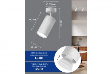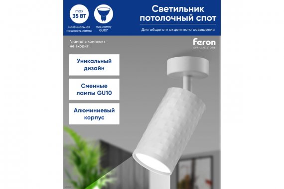 Светильник накладной под лампу, спот (-) FERON ML1871, GU10 35W, 230V, IP20, цвет белый, корпус алюминий, 55*55*165