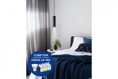 Светильник накладной под лампу, спот (-) FERON ML1878, GU10 35W, 230V, IP20, цвет черный, корпус алюминий, 55*55*200