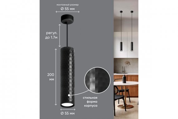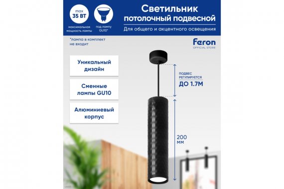 Технические характеристики FERON ml1878 на подвесе, mr16, 35w, 230v, черный 55x200 48655