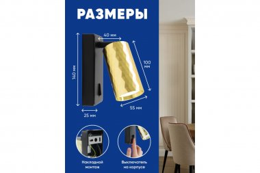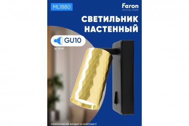 Подсветка настенная MR16 (накладной) FERON ML1880 черный-золотой, 35W, 230V, корпус алюминий, IP20, 55*55*140мм,
