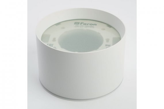 Светильник накладной под лампу, спот (ИПО) FERON HL373, GX70 25W, 230V, IP44, цвет белый, корпус алюминий, рассеиватель стекло, 115*115*73