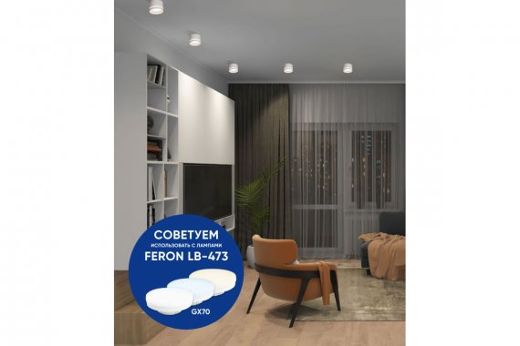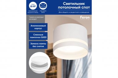 Светильник накладной под лампу, спот (ИПО) FERON HL372, GX70 25W, 230V, IP20, цвет белый, корпус алюминий, акрил, 115*115*80