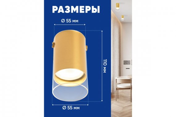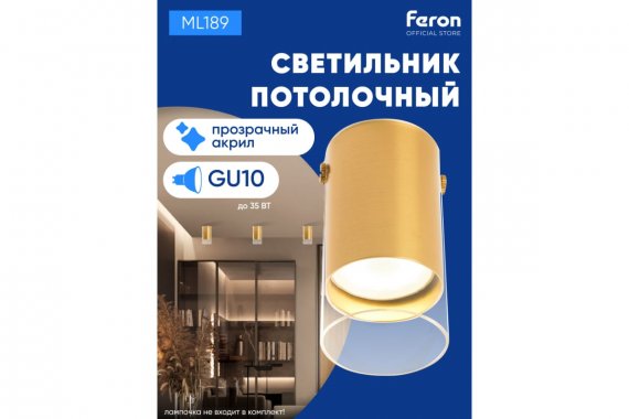 Светильник накладной под лампу, спот (-) FERON ML189 , GU10 35W, 230V, IP20, цвет золото, корпус алюминий, акрил, 55*55*110