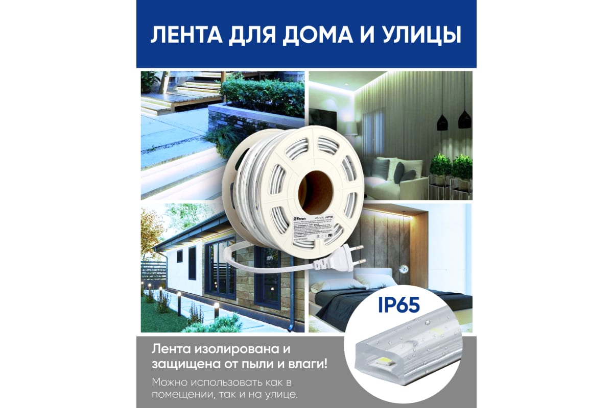 Feron 48764 Лента светодиодная 220V LS710, 120*SMD2835, 10W/m, IP65, 6500К