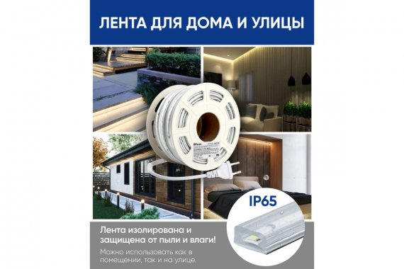 Лента обладает защитой IP65 и может быть использована как в помещении, так и на улице.