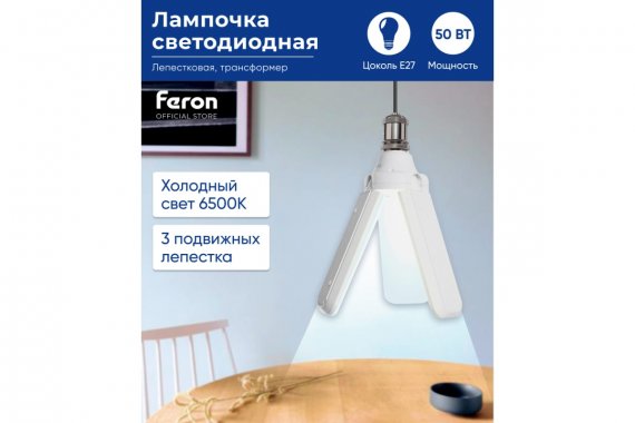 Технические характеристики FERON lb-653 3 лепестка e27 50w 6500к 48772