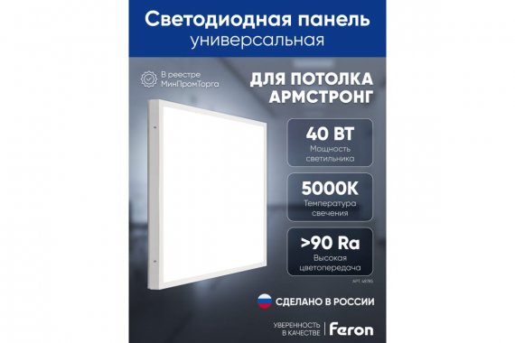 Технические характеристики FERON MASTER ДВО 40W-5000К-595x595x40-опа 48785