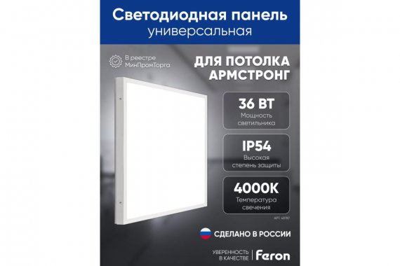 Преимущества FERON MASTER ДВО 36W-4000К-595x595x40-оп 48787