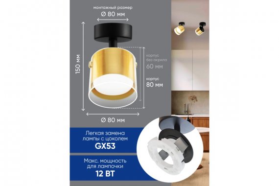 Технические характеристики FERON hl3891 под лампу gx53 LUMINA, золото, черный 48797