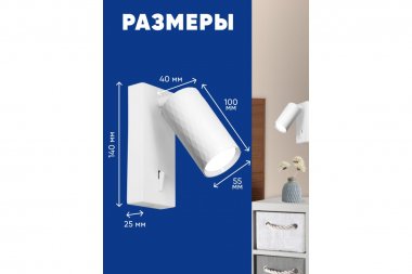 Подсветка настенная MR16 (накладной) FERON ML1880 белый, 35W, 230V, корпус алюминий, IP20, 55*55*140мм,