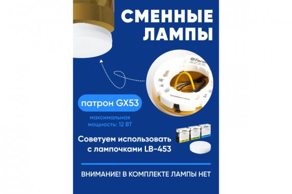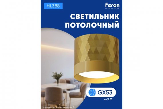 Технические характеристики FERON hl388 gx53 12w 230v, золото 48801