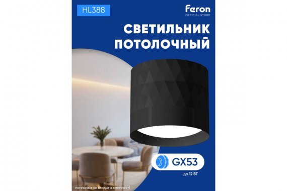 Технические характеристики FERON hl388 gx53 12w 230v, черный 48802
