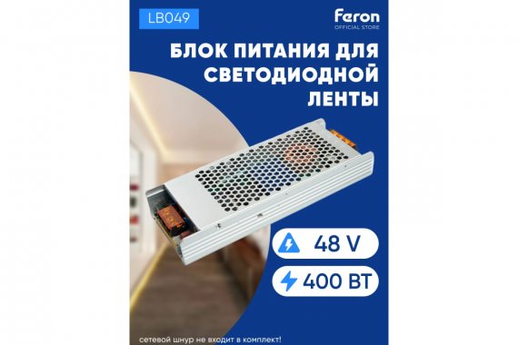 Трансформатор электронный для светодиодной ленты 400W 48V 210*81*30мм IP20 (драйвер), LB049 FERON