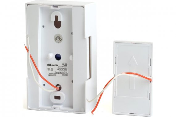 Звонок дверной проводной FERON DB-102, 1 мелодия, цвет белый, БАЗА: 230V, 119*70*37 мм, КНОПКА: IP20, размер кнопки 45*80*25мм