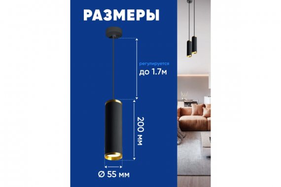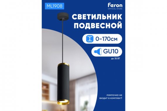 Светильник накладной под лампу, спот (-) FERON ML1908, GU10 35W, 230V, IP20, цвет черный, корпус алюминий, 55*55*200