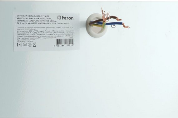 Светодиодные светильники российского производства Feron TR Армстронг используются для основного освещения коммерческих помещений, офисов, магазинов и тп. Драйвер расположен вне зоны видимости. Рассеиватель из полистирола не желтеет и не изменяет формы в процессе эксплуатации, создает наиболее комфортный для зрения световой поток, а отсутствие пульсаций освещенности обеспечивает полную безопасность для зрения.