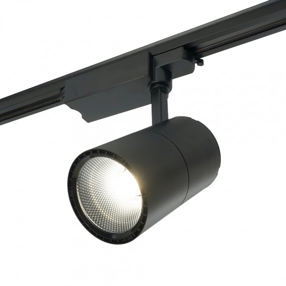 Светильник трековый на шинопровод, однофазный (ДПО) FERON AL103, 40W, 4000К (белый), 170-265V, 3600Lm, цвет черный, корпус алюминий, рассеиватель поликарбонат, вращение ?360°/?90°, 97*165*200 мм