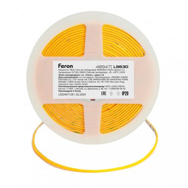 Feron 48947 Лента светодиодная 12V LS630 , 400*COB, 7W/m, IP20, 3000К
