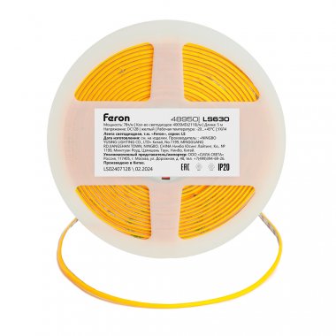 Лента светодиодная 12V FERON LS630, 400*COB, 7W/m, IP20, (желтый), Кратность резки мм 10мм, 5000*3*1,80мм