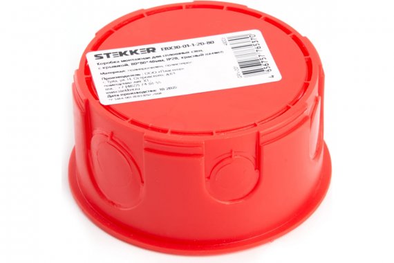 Коробка монтажная STEKKER EBX30-01-1-20-80, количество вводов: -, полипропилен, полистирол, цвет красный, размер 80*80*40мм.